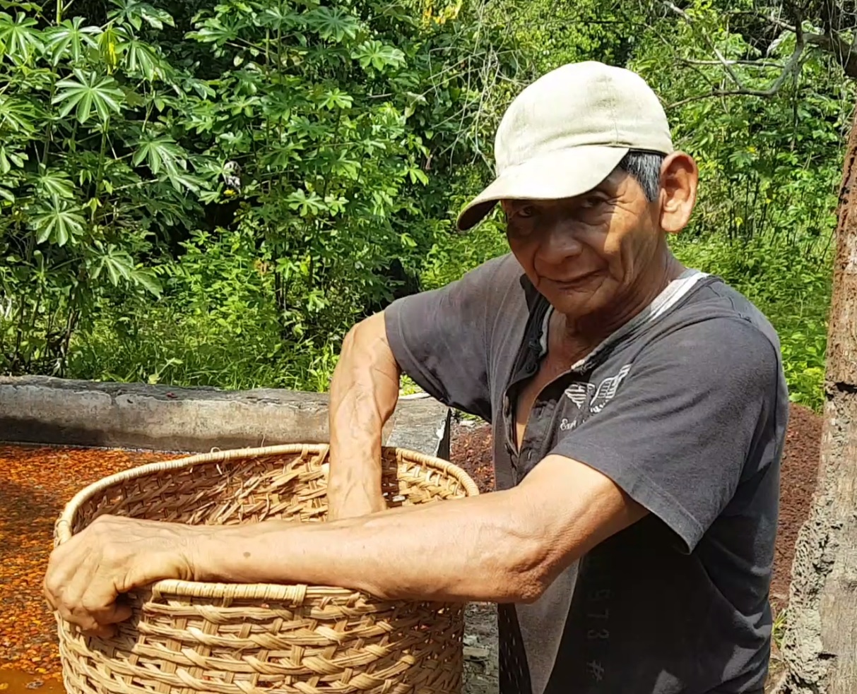 É um produtor do rio Apoquitaua, mas não mora no rio principal mas sim em um dos pequenos afluentes (olha no mapa aqui) que na época da seca, justamente durante a safra de guaraná, pode ficar muito fino ou até secar totalmente (como aconteceu em 2024). Por isso o safrificio é maior ainda do que dos demais produtores, e por causa da dificuldade de transporte acaba precisando de apoio para custear o beneficiamento aguardando o rio subir para entregar a produção.